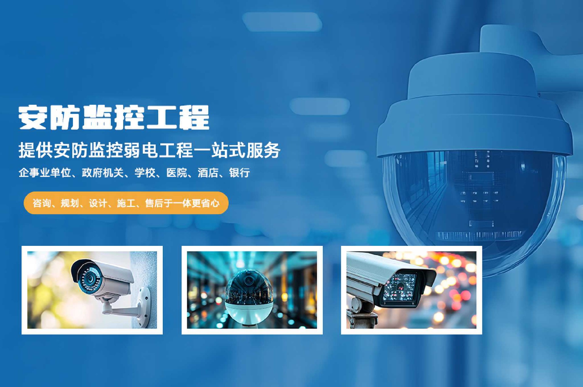 安防監(jiān)控智能化服務(wù)商,專注安防監(jiān)控整體解決方案,視頻監(jiān)控系統(tǒng)、門禁系統(tǒng)、車輛道閘系統(tǒng)、紅外報(bào)警系統(tǒng)等